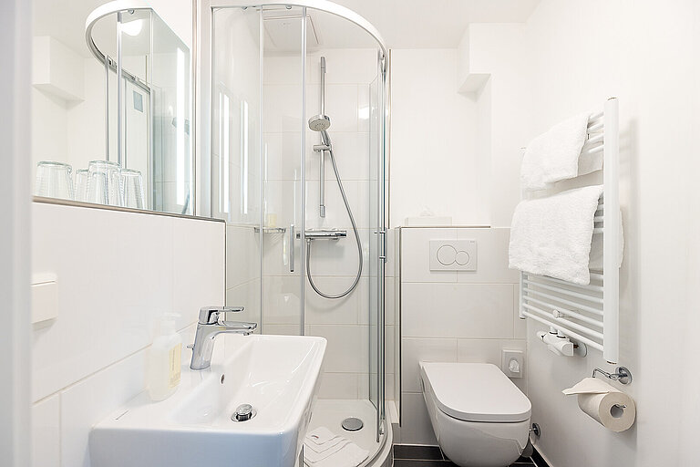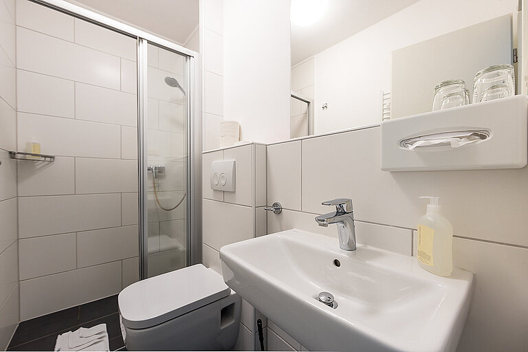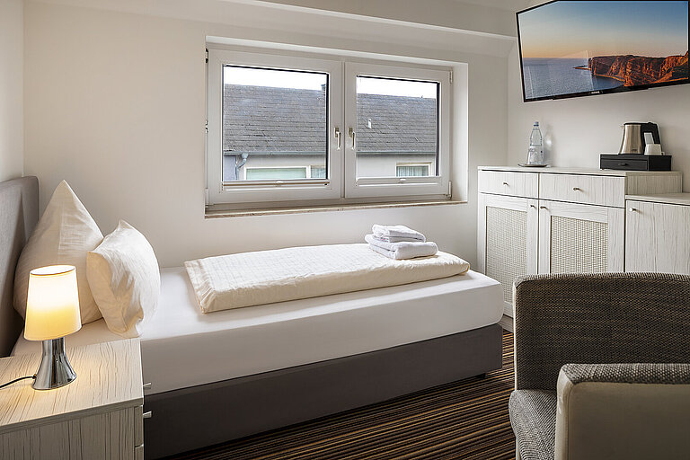 Für den einzel-reisenden Gast ein gemütliches, schlichtes und günstiges Zimmer mit Dusche/WC und kostenlosem W-LAN. Gelegen ist es zur Oberland-Seite.